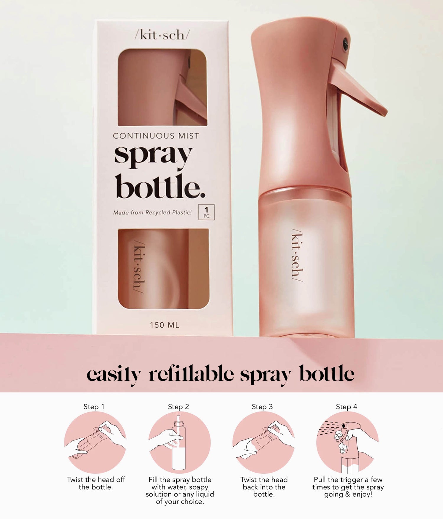 From the studio to the stage, keep your style fresh with the KITSCH Spray Bottle—because great hair should never miss a beat! Grab yours now and mist like a pro!💦