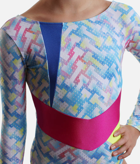 Printed Long Sleeve Girl's Gymnastics Leotard - 27836