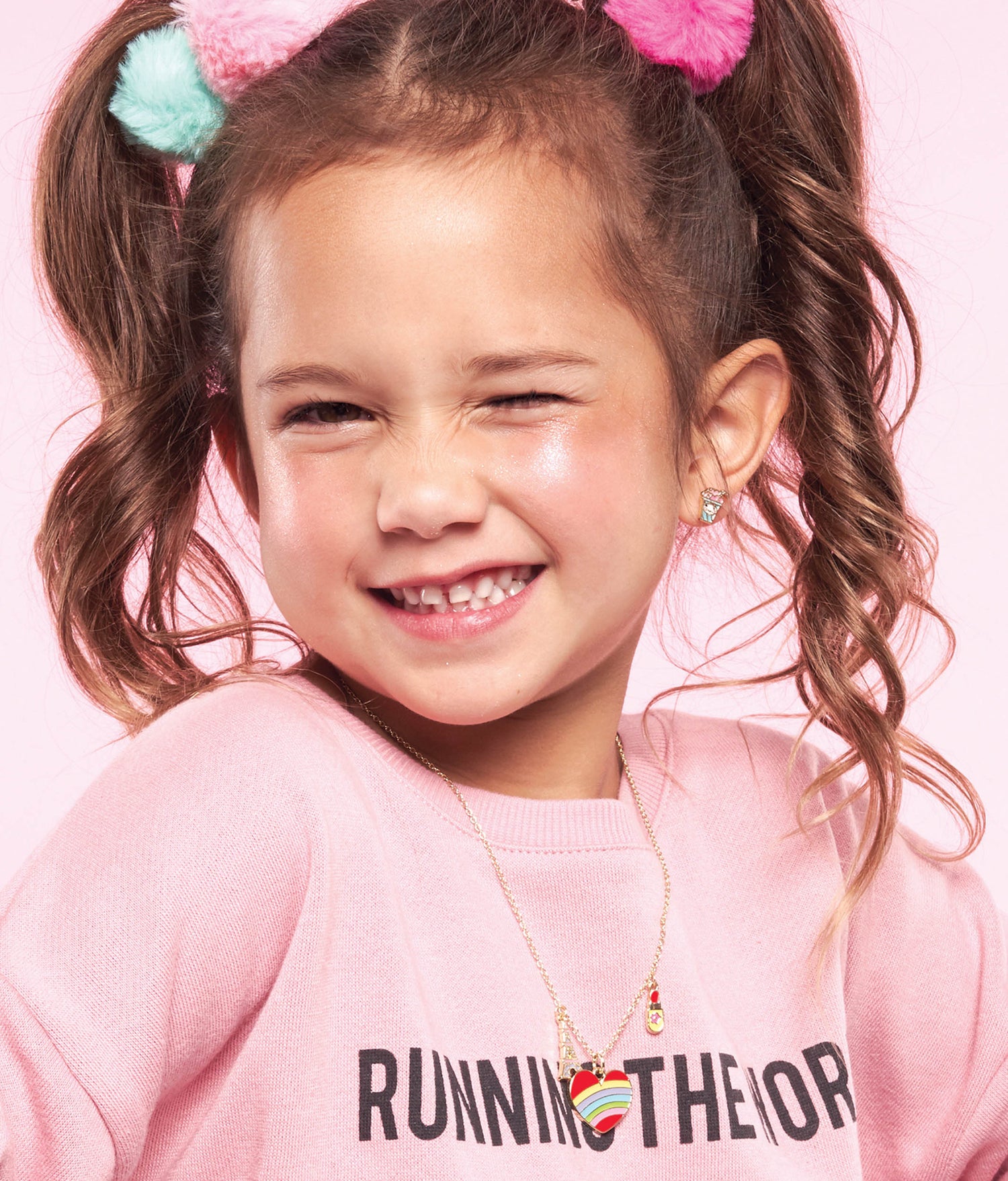 Sparkle and shine with the Girl Nation Necklace, a perfect accessory for your little fashionista! Featuring a trio of adorable charms—a vibrant Eiffel Tower, a colorful heart bursting with rainbow hues, and a cute lipstick—this necklace is the ultimate statement piece for any tiny dancer!
