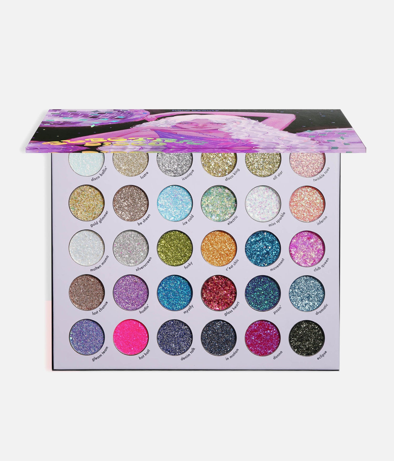 With 30 mega-glam shades, Electric Disco is a glitter playground, packed with both smooth pressed glitter and chunky heart-shaped sparkles for extra ✨oomph✨. No glue needed, no fallout mess, just pure high-impact glam in a swipe. Go soft and twinkly or all out with full sparkle armor - this palette lets you switch it up faster than your quick-change backstage.