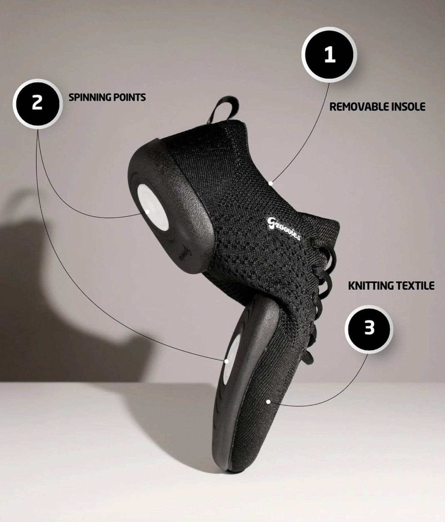 Vegan Performance Dance Sneaker with Spinning Points, Black Knit - GROOVIES TRAINER